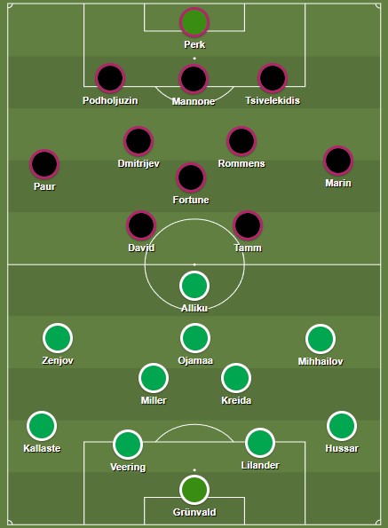 Flora kaitseliin on hooaja lõpusirgel olnud eksperimentaalne, sest keskkaitses tegutsevad põhikohaga äärekaitsja Michael Lilander ja hooaja alguses klubi keskkaitsjate hierarhias umbes kaheksandal kohal asetsenud 17-aastane Robert Veering. Enne Levadialt saadud 1:2 kaotust oli selle duoga võetud viis võitu järjest.