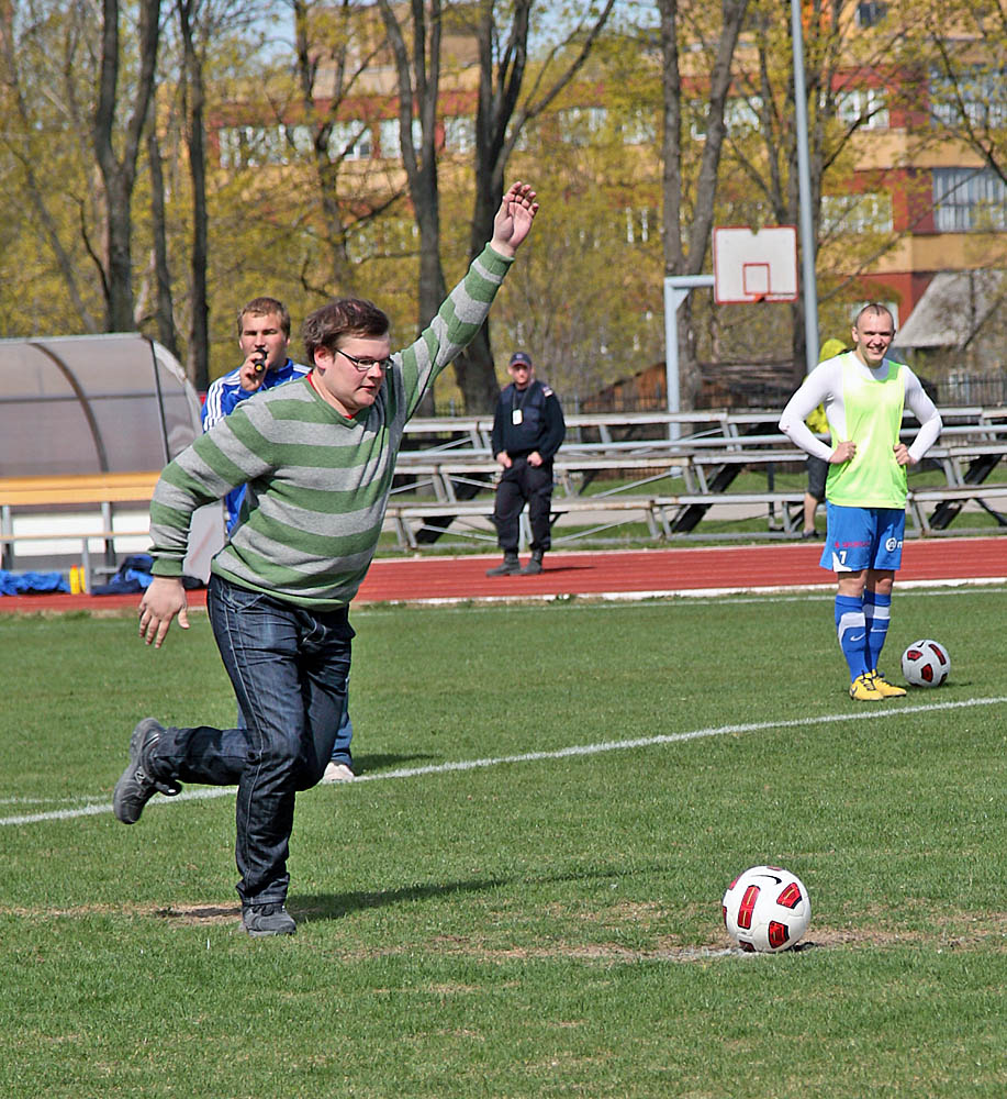 Kalju ridades jooksevad tavapäraselt väljakule nii klubi tegevjuht Peeter Kusma kui ka pikaaegne "eestlane", esindusmeeskonna treener Getulio Aurelio.