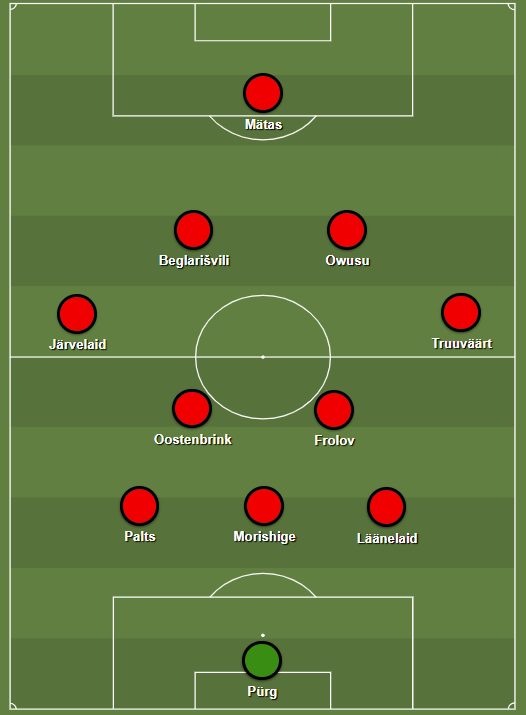 Kaitsjad: Ricky Chanda, Yosuke Morishige, Mathias Palts, Karl Läänelaid, Aleksandr Alteberg, Alexander Medvedev, Jakob Käis, Mark Villem Marmei, Steven Salmistu.