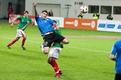 Võitluslikkusest noortel puudu ei jäänud. Foto: Hendrik OsulaPäev enne sõprusmängu Baskimaa vastu esmakordselt Eesti esinduskoondisse kutsutud Henri Anier ja Albert Prosa särasid kohtumise järel justkui sünnipäevalapsed.